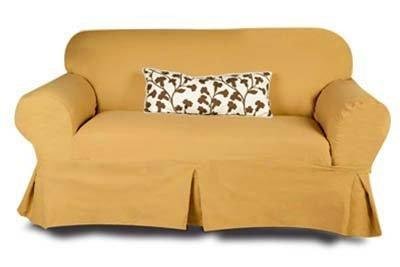 Fabric and Color: Canvas Soft Weave, Latte. Our skirt style, full arm depth slipcover has a center pleated kick to provide a more formal look for your furniture. Like our standard, full depth arm style slipcover it accommodates most sofas and works well with most arm sizes and shapes.