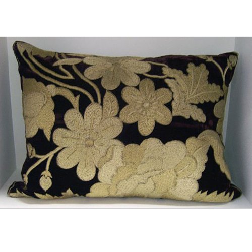 The Olivia throw pillow by Anke Drechsel is made exclusively for Fine Linen and Bath. The pillow is 12" x 15" and made of silk velvet with metallic threading. The botanical pattern embroidered in India is a signature of Anke Drechsel. Insert included.